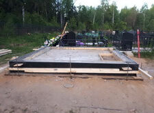 Начинается процесс монтажа. Первый его этап – создание фундамента. Для этого мы вкрутили сваи и для создания дополнительной прочности связали их арматурой.