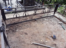 В ходе работы над данным заказом нам предстояло: переустановить покосившийся широкий памятник из чёрного гранита; покрасить обветшавшее от времени ограждение; обновить надписи на надгробье; установить прямоугольный цветник, а также выложить землю на участке гранитной брусчаткой. Приехав на место захоронения мы застали могилу в заброшенном состоянии: на всей её территории росла сорная трава, практически полностью скрывавшая памятник.